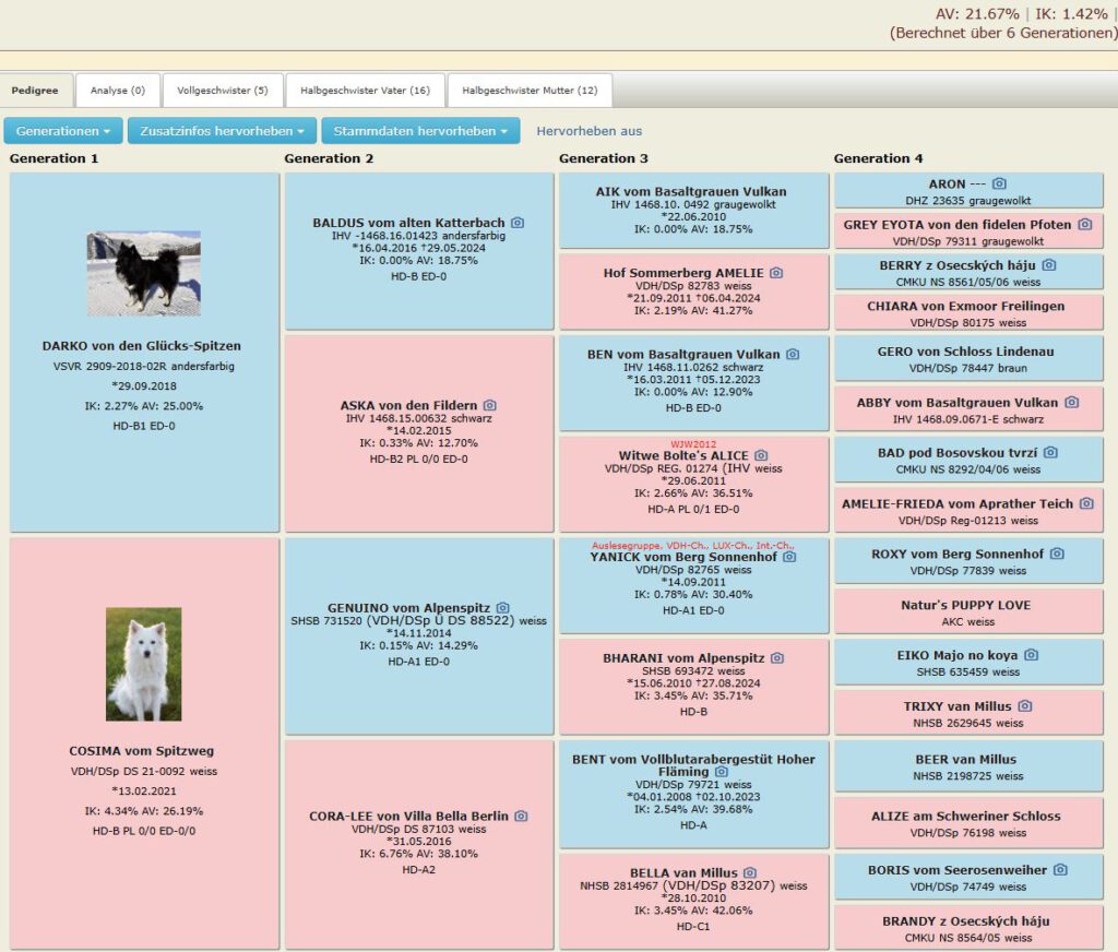 Der Vater Darko ist ein wunderschöner Großspitz in Black and Tan. Ich kenne ihn schon seit über einem Jahr und schon an unserem ersten Treffen waren er und Cosima sich sehr sympathisch. Er ist so groß wie Cosima, quadratisch und hat wunderschönes langes Fell. Er ist sehr sportlich, sehr liebenswürdig und ein treuer Begleiter seiner Familie mit Kindern. Er geht viel Wandern und ist als Schweizer ein begeisterter Kletterer.