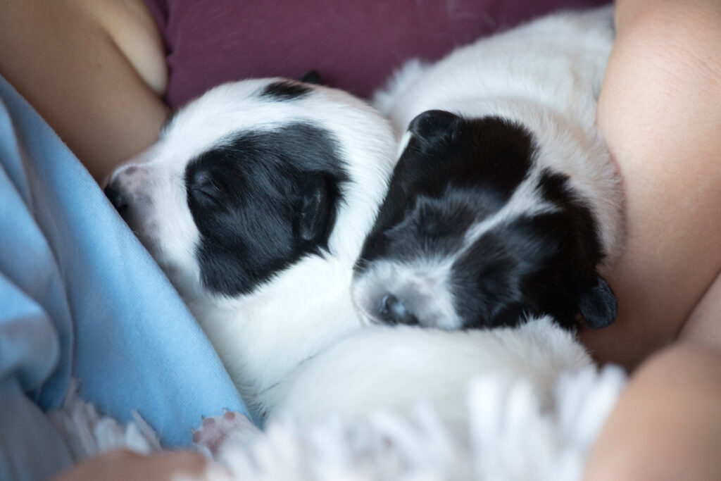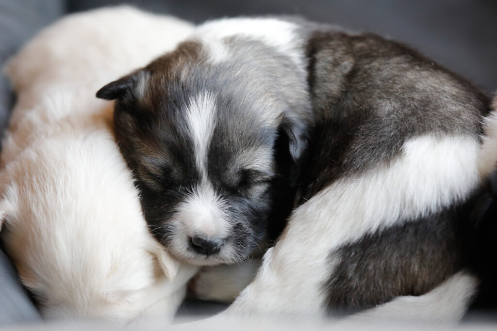 Für unseren Erstgeborenen hat die Mama einige Wehen gebraucht, danach ging es viel leichter. In weniger als 2,5 Stunden waren alle Welpen geboren. Es ist ein sehr zufriedenes Nest, was von der Mama liebevoll umsorgt wird.