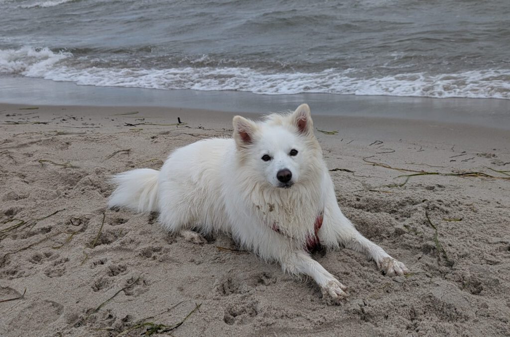 „Bella wohnt in Bayern, ist eine richtige Wasserratte und Schmusebacke. Sie ist sehr verspielt, wild, an allem interessiert und leicht zu begeistern, einfach ein toller Hund!“