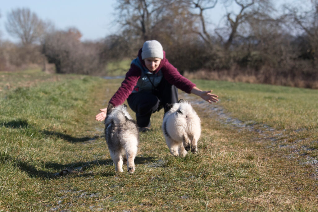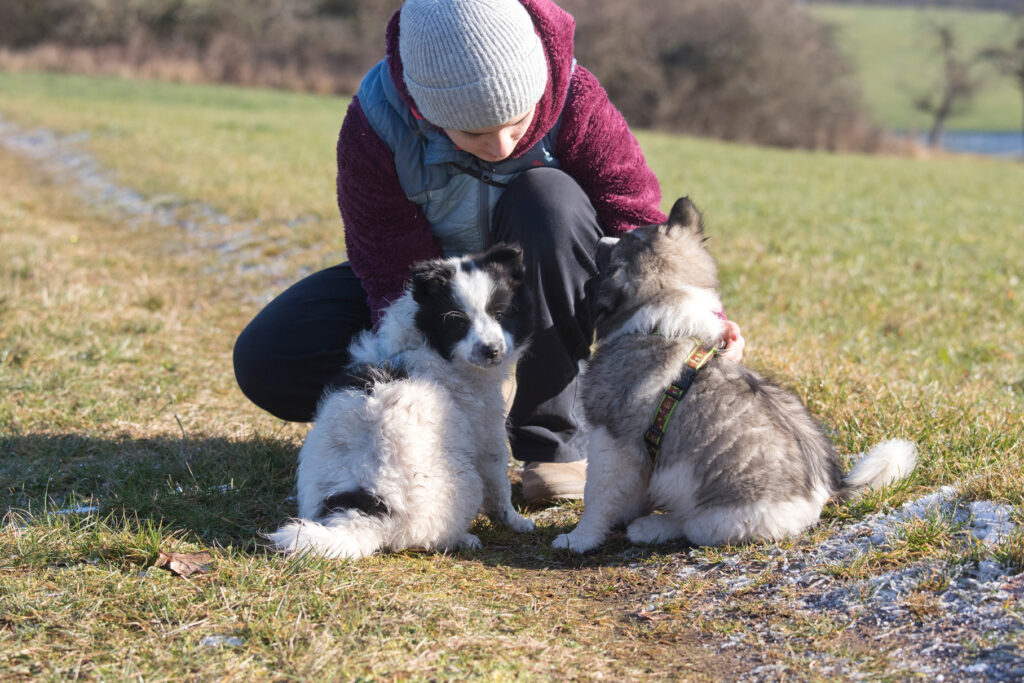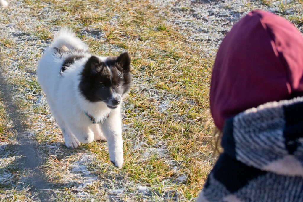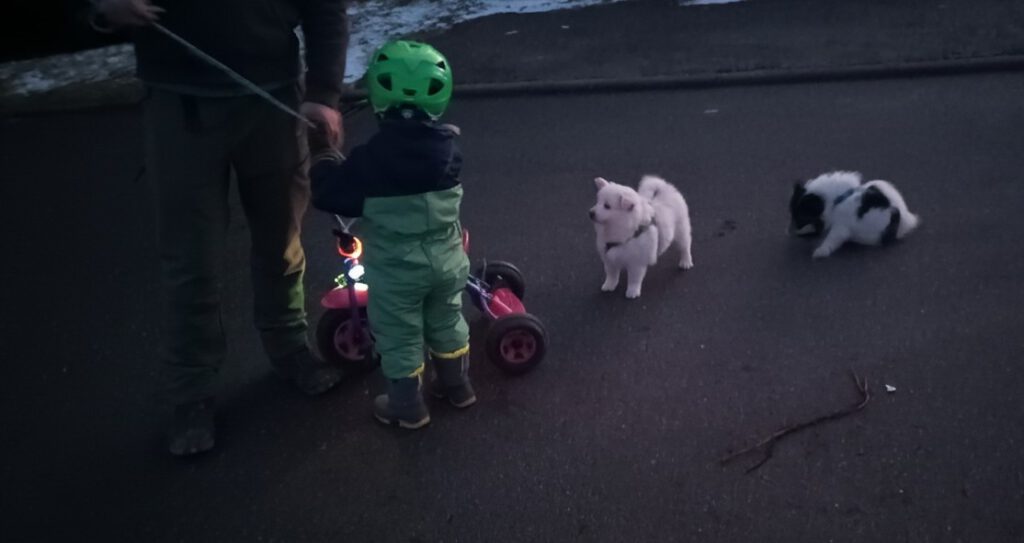 In der achten Woche gehen wir weiter fleißig spazieren und fahren täglich Auto. Auch mein Neffe und meine Nichte waren mit dabei. Mich überrascht immer wieder, dass Welpen schon verstehen können, wenn ein Dreijähriger vor ihnen steht.