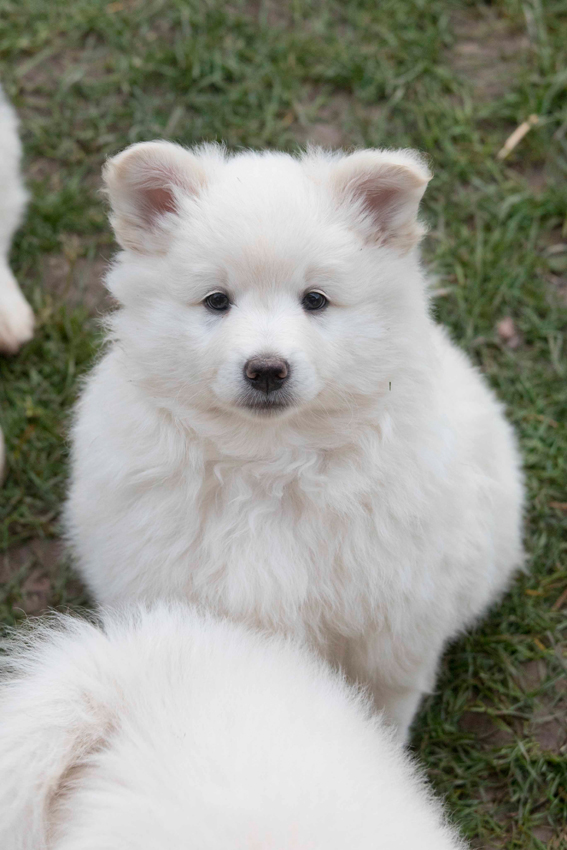 Unser großer Weißer ist ein kleiner Schönling mit ausgeprägtem Dickkopf. Er ist jetzt zusammen mit dem dunklen Schecken der schwerste im Wurf und weiß sein Gewicht bei Spielen mit seinen Geschwistern einzusetzen. Liegt der andere am Boden, dann stellt er sich einfach drüber und Feierabend. Hat er keine Lust zu spielen, dann dreht er sich weg und die Geschwister prallen einfach ab. Wenn er müde ist, dann schläft er an sein Kuschelkissen gekuschelt oder auch im Arm, egal. Ist er wach wird gefressen. Allerdings am liebsten Mamamilch oder Fleisch. Durch seine kräftige Statur wirkt er beim Rennen wie ein kleiner Eisbär. Im Hundesport wie Agility oder Ähnlichem sehe ich ihn nicht. Mit Geduld und Konsequenz wird er aber ein beeindruckender Hund werden, den nichts so leicht aus der Ruhe bringt.