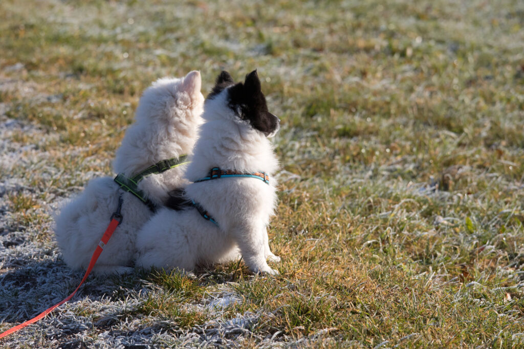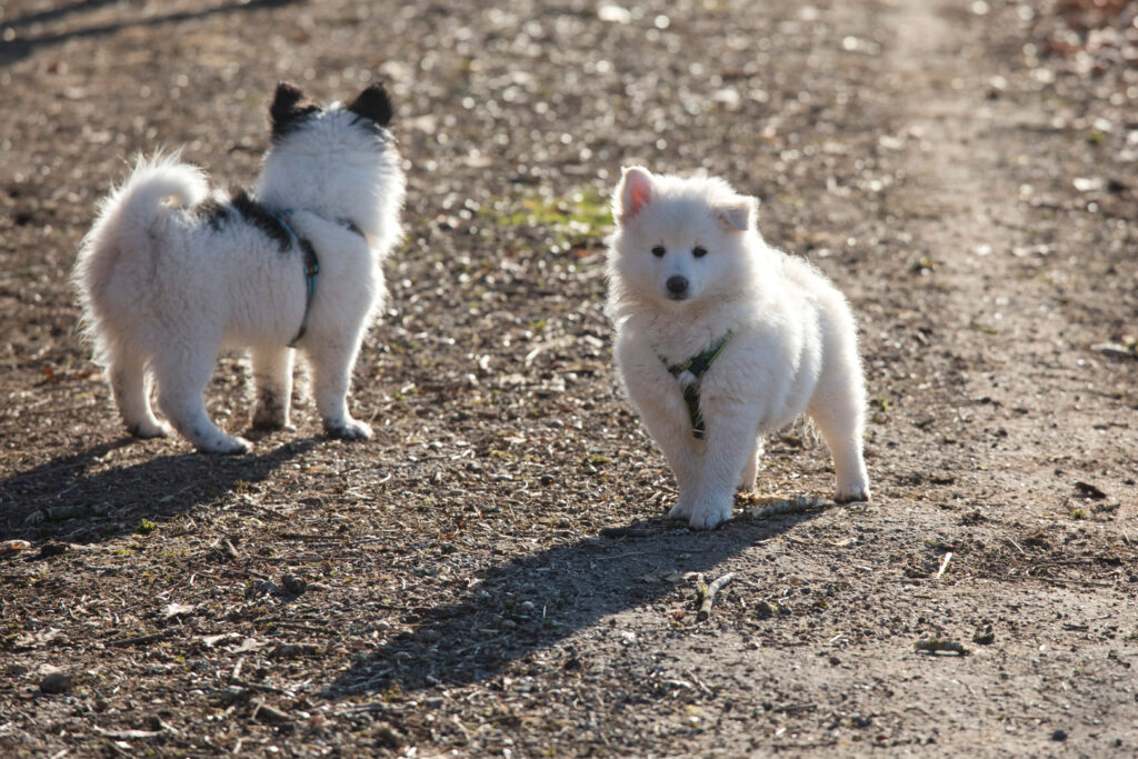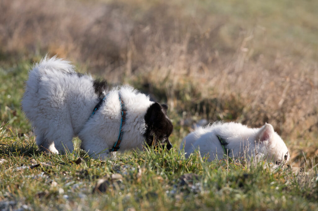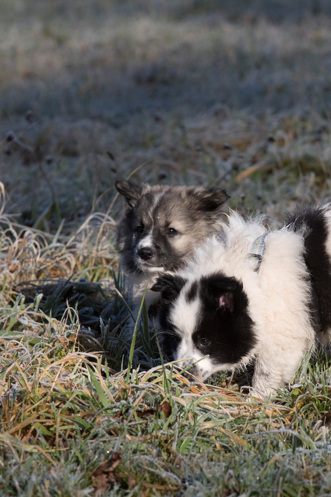 Der kleine Weiße stürzt sich gerne voller Eifer ins Spiel. Dem großen wird spielen schnell zu doof, wenn er merkt, dass er den Kürzeren zieht und dreht sich weg.