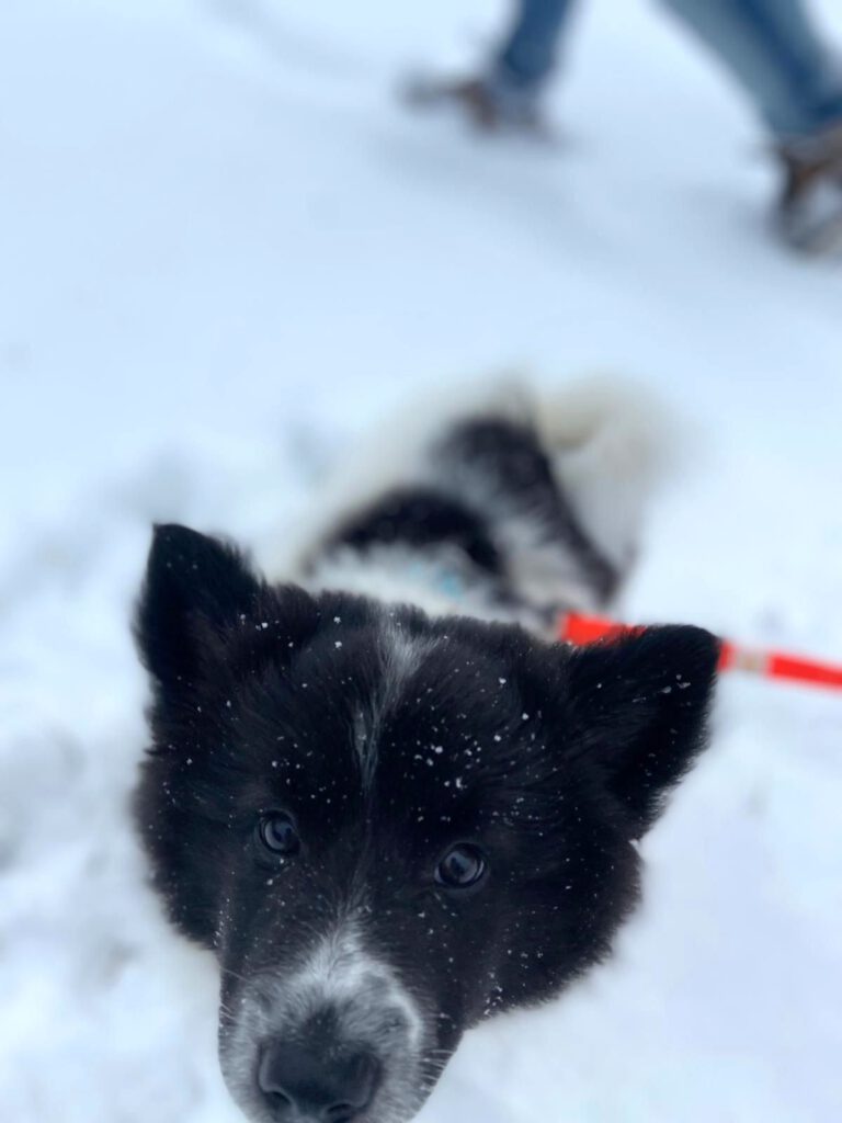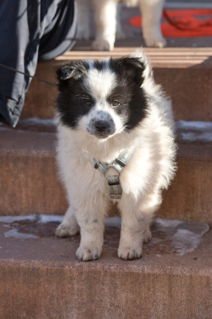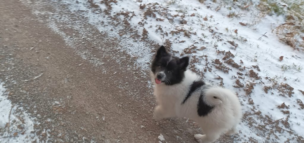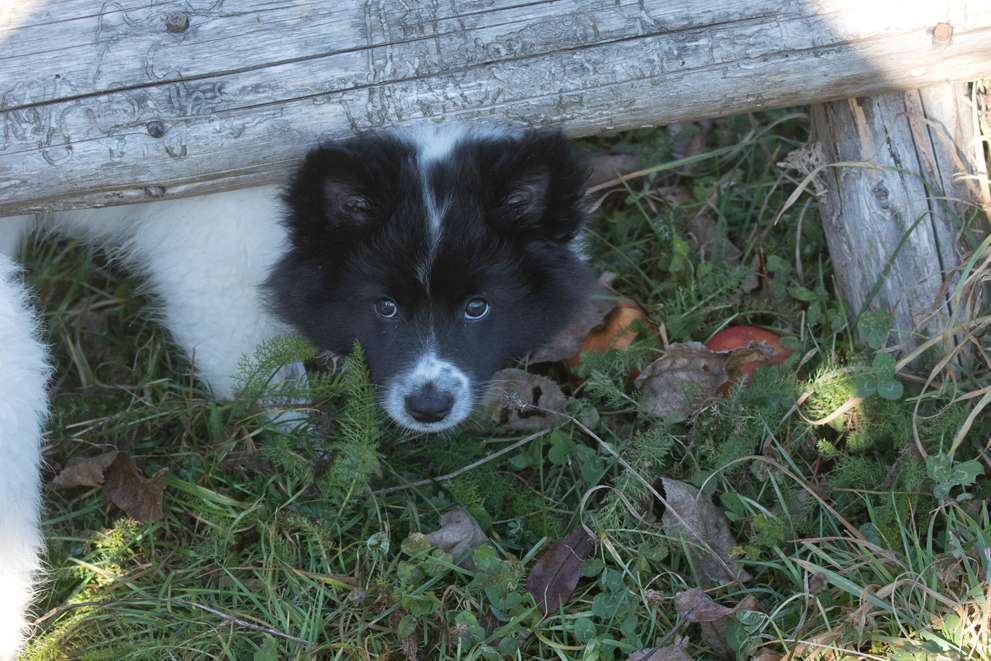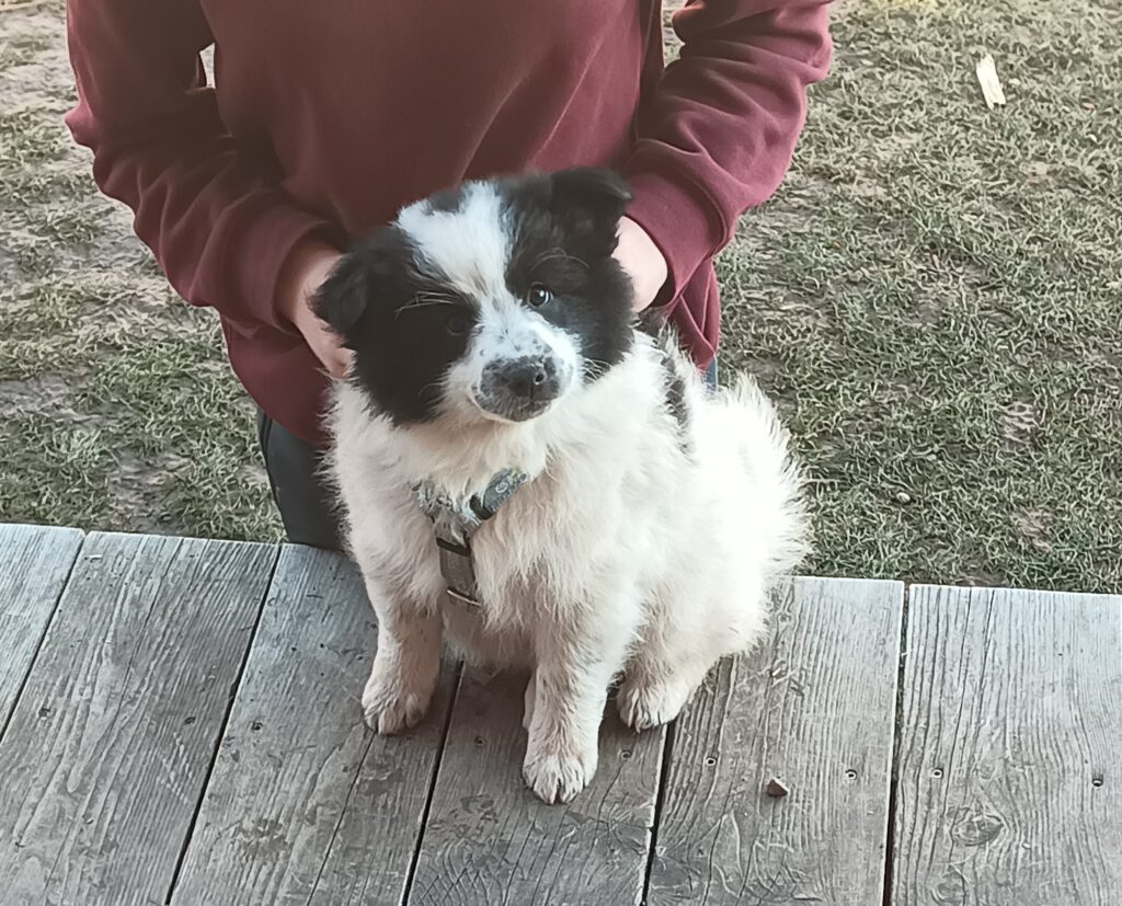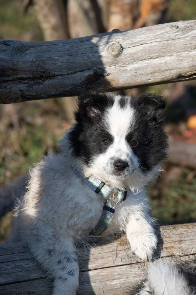 Unser Kleinster Welpe und kommt sofort Schwanzwedelnd angelaufen, wenn eines meiner Kinder die Welpen besucht. Er ist super freundlich, tapsig und tollpatschig. Einfach ein Welpe wie er im Buche steht. Bei Diskussionen zieht er oft den Kürzeren, aber das macht ihn nicht zornig sondern er behält sein sonniges Gemüt und versucht es einfach später noch einmal. Gibt es Ziegenmilch, kann ich sicher sein, dass er oder sein Bruder mit dem schwarzen Köpfchen darin baden. Ob freiwillig oder unfreiwillig lässt sich noch nicht sagen, aber sie sind kleine Saubären. 😀