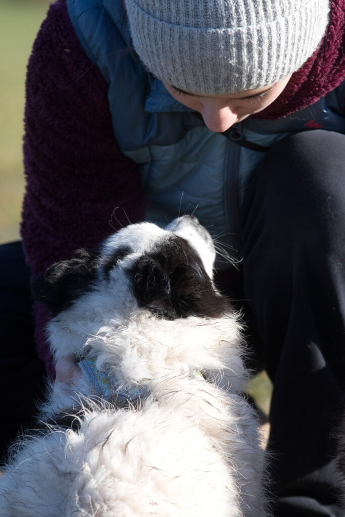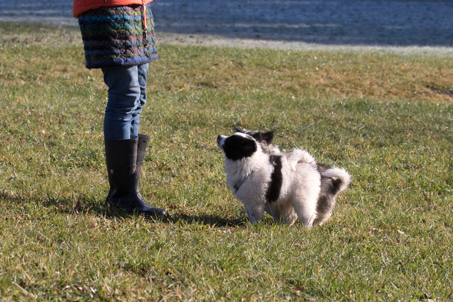 Der helle Schecke lässt mich lächeln. Er schlängelt sich um alle herum und wird nicht müde es zu versuchen an die guten Plätze zu kommen. wenn es sein muss Kopf über. In der Hand ist er nach wie vor ein Lamm und wird daher von meiner großen Tochter mit Vorliebe gekuschelt.